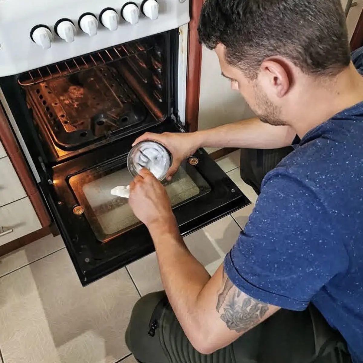 You might need to spray and sprinkle again over stubborn stains. This will leave your oven looking and smelling fresh.