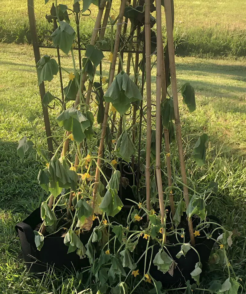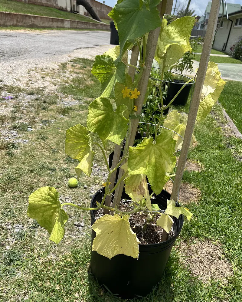 The cucumbers are composed of 96% percent water, so it makes complete sense that they would need more water. At the end of it, the yellowed cucumber leaves fall off which ultimately kills the plant.