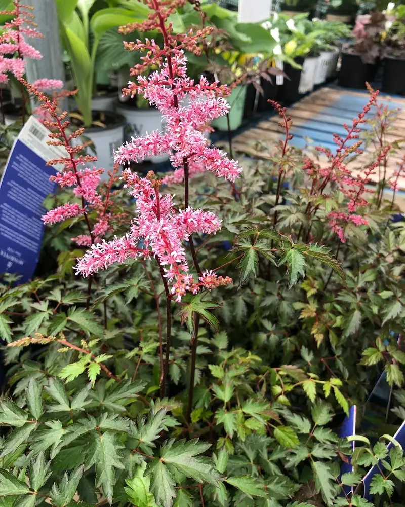Astilbe produces its feathery plumes of flowers over an extended period, often lasting several weeks. Its finely divided leaves and dense growth habits may deter deer from browsing on them.
