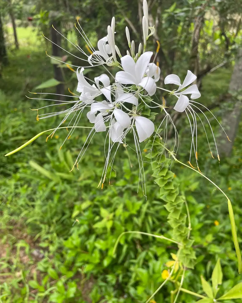 Cleome or the spider flower, features tall stems topped with agglomeration of spider-like blooms. Its spiky foliage and pungent smell make it less appealing to herbivores, reducing the likelihood of browsing.