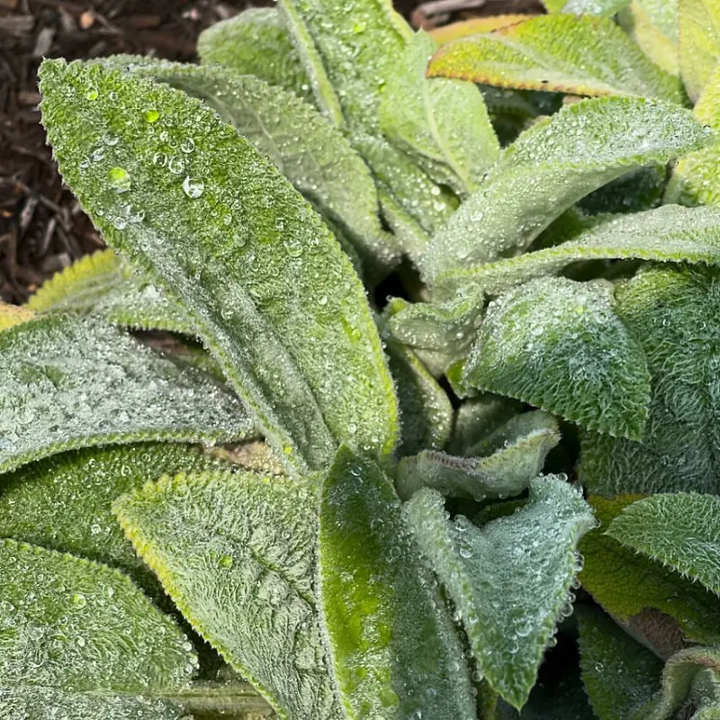 Lamb's Ear is a plant with soft, fuzzy leaves that look like the ears of a lamb. These leaves are a silvery-green color and feel velvety to the touch.