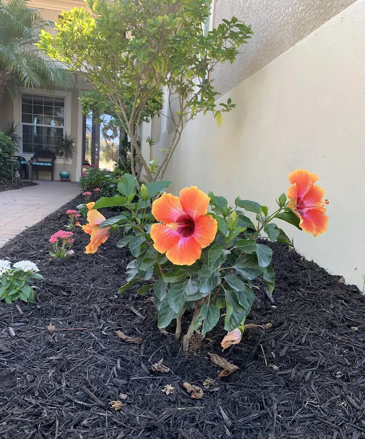 Spread a layer of organic mulch at the hibiscus base to keep the soil moist, curb weed growth, and regulate temperature. This mulch also acts as a protective shield in colder months. If your area is dry, mulching helps retain moisture around the plant.