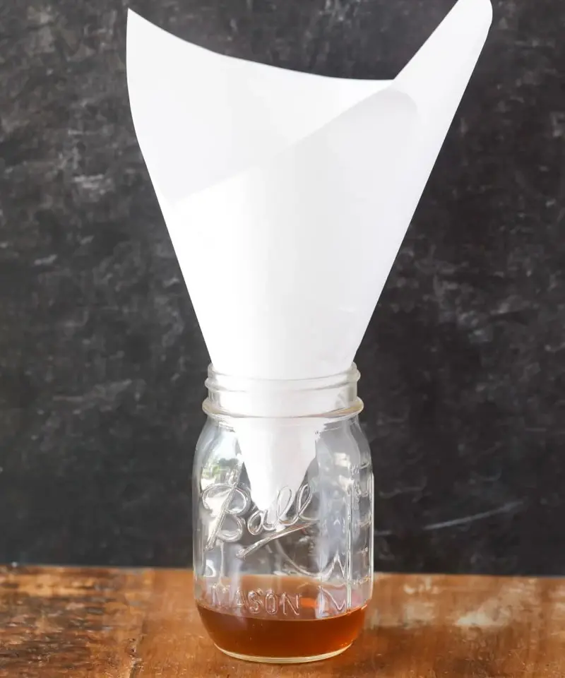 If you don’t have access to plastic wrap or want to go green, a paper funnel works just as well. Grab a sheet of paper and make a cone from it with a small hole at one end. The design is very reminiscent of traditional fish traps.