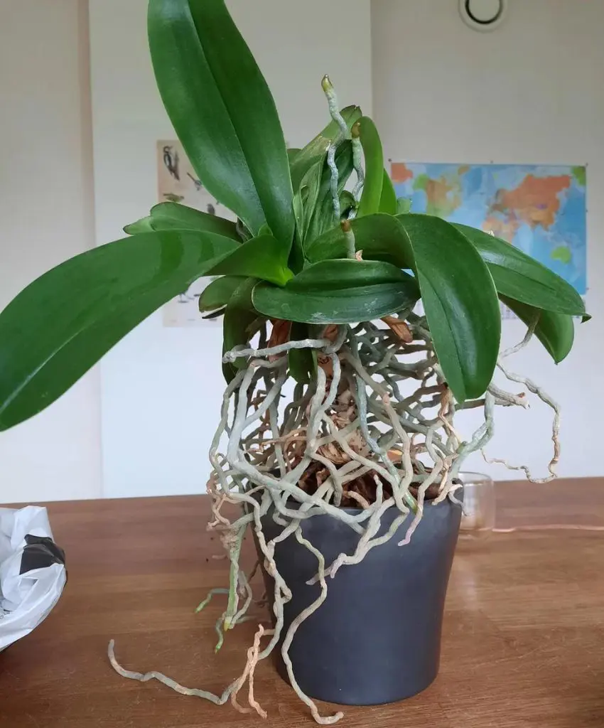 If your orchid is not exposed enough to light, try to take it closer to a window or adjust the position of the grow light to give it bright light. If the light is to bright, opt to cover it with sheer curtains or shades to soften the light. For orchids that are stretching out or have little blooms, more light often promotes blooms to the plant.