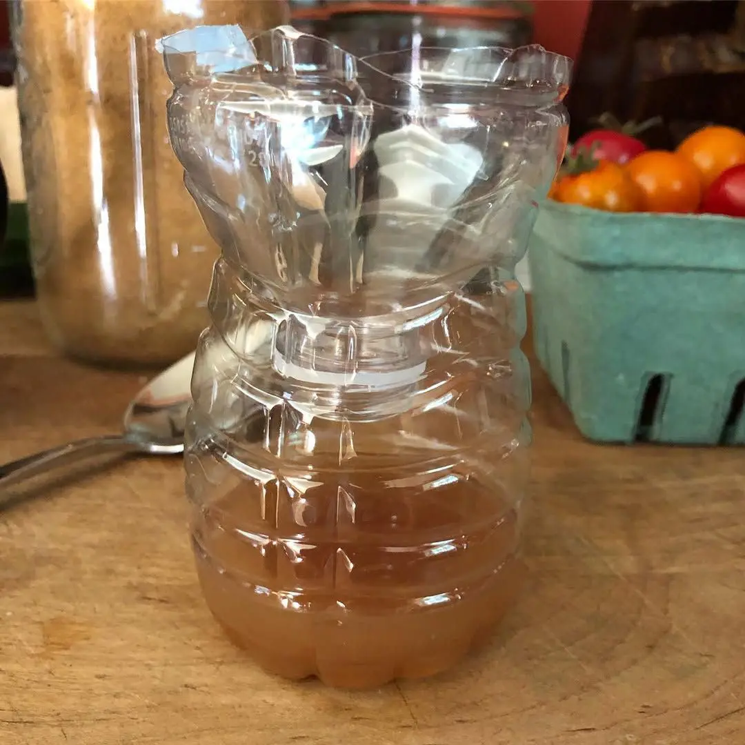 Pour half a cup of apple cider vinegar into the container. Do not add too much because the scent may become diluted in the surrounding air, making it less attractive to flies.