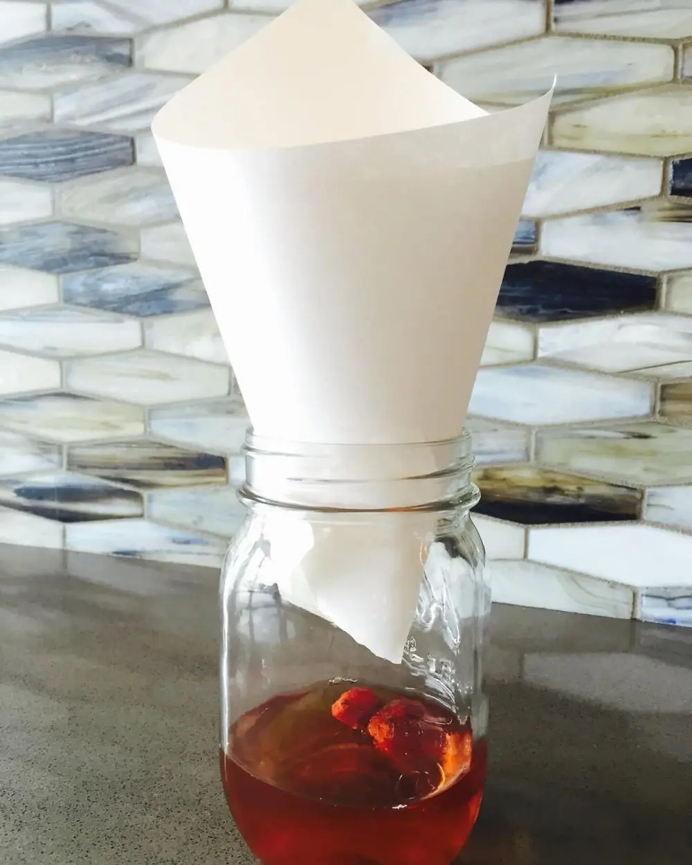 An environmentally friendly alternative is to replace the plastic with a paper funnel. A paper funnel is best suited for glass jars with slightly narrow openings.