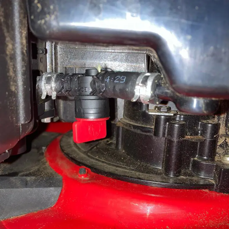 If your fuel line has a shut-off valve, simply turn it. Or, use a vice grip to clamp the fuel line. Also, note that there will already be a little gas in the fuel line, so you’ll need to catch some gas drips. Lay out a rag or a bowl that you don’t mind getting dirty under the line.
