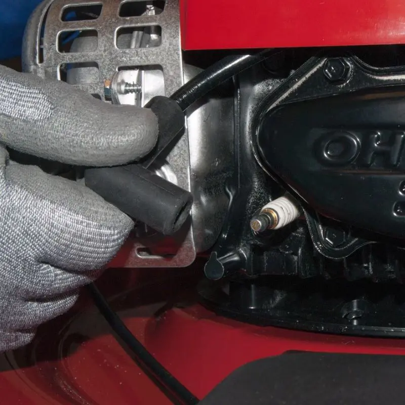This is an extremely important safety step, as with this plug attached the engine is 'live' and could start suddenly with any movement of the blades of the engine or work on the rest of the mower. Even though you won't be working directly on the blades or parts that could cause the engine to start, it's still best practice to remove the cable.
