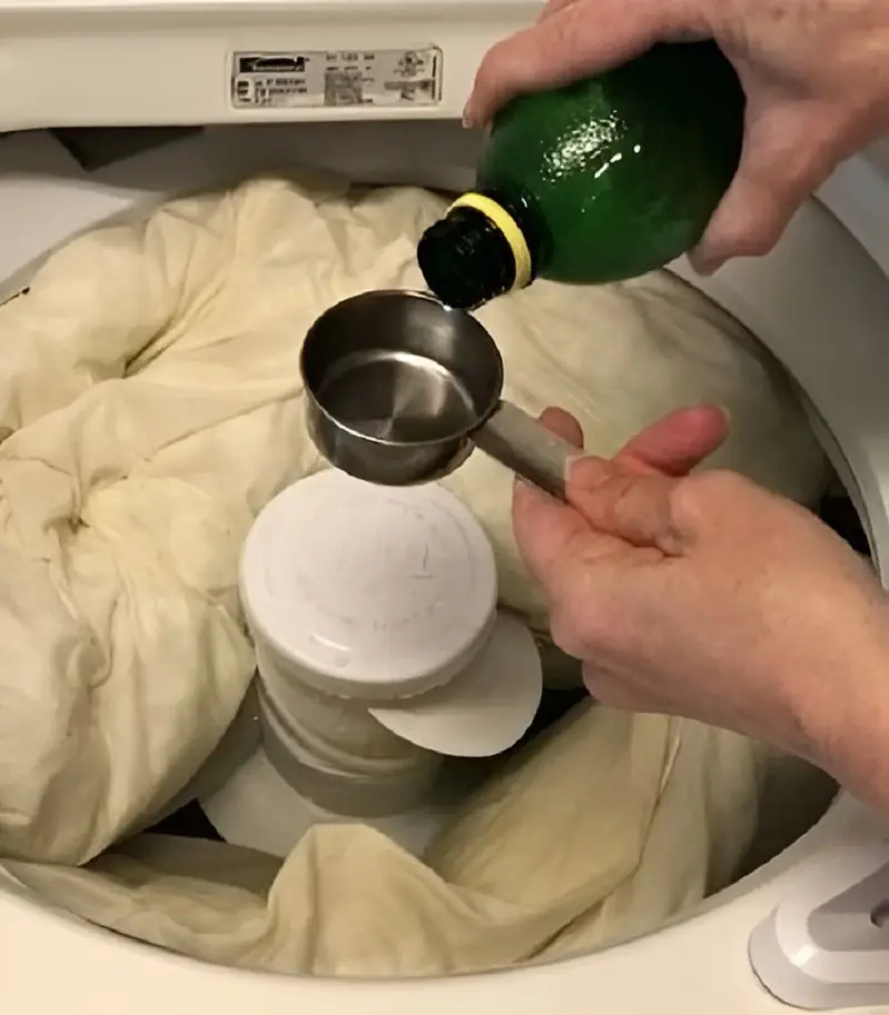 While the washer drum is spinning, open the lid to pour in two cups of distilled white vinegar from the top, and allow the machine to run through its entire hot water cleaning cycle.