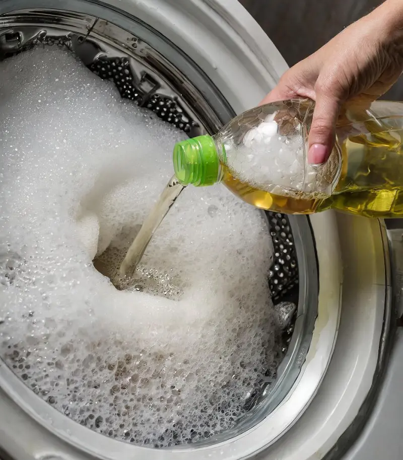 Distilled white vinegar works well to clean and disinfect surfaces and stains as it contains acetic acid that can help dissolve hard minerals that build up in the washer drums and drain hoses. The acid can also help kill any odor-causing bacteria and fungi that may occur in your washing machine.