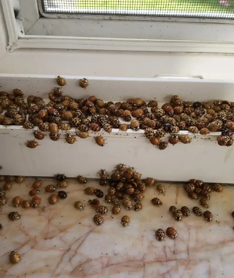 Sprinkling food-grade diatomaceous earth around entry points and areas where ladybugs are active or entering your home also helps control infestation. DE is a natural powder with microscopic sharp edges that cut through the insects' exoskeletons, leading to dehydration and death.