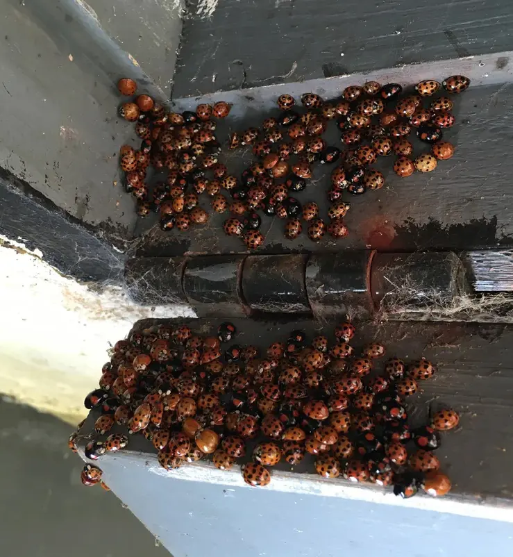 Sometimes, the infestation of ladybugs is accompanied by a subtle, mildew smell resulting from their pheromones. This smell becomes noticeable when ladybugs are disturbed, or when they cluster together in large groups.