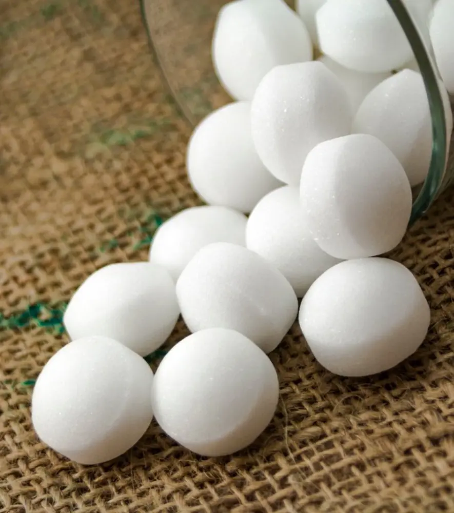 Mothballs are commonly made of naphthalene or paradichlorobenzene. These pellets of a chemical pesticide sublimate with time, meaning they transit from a solid to a gas state, releasing vapors into the surrounding air.