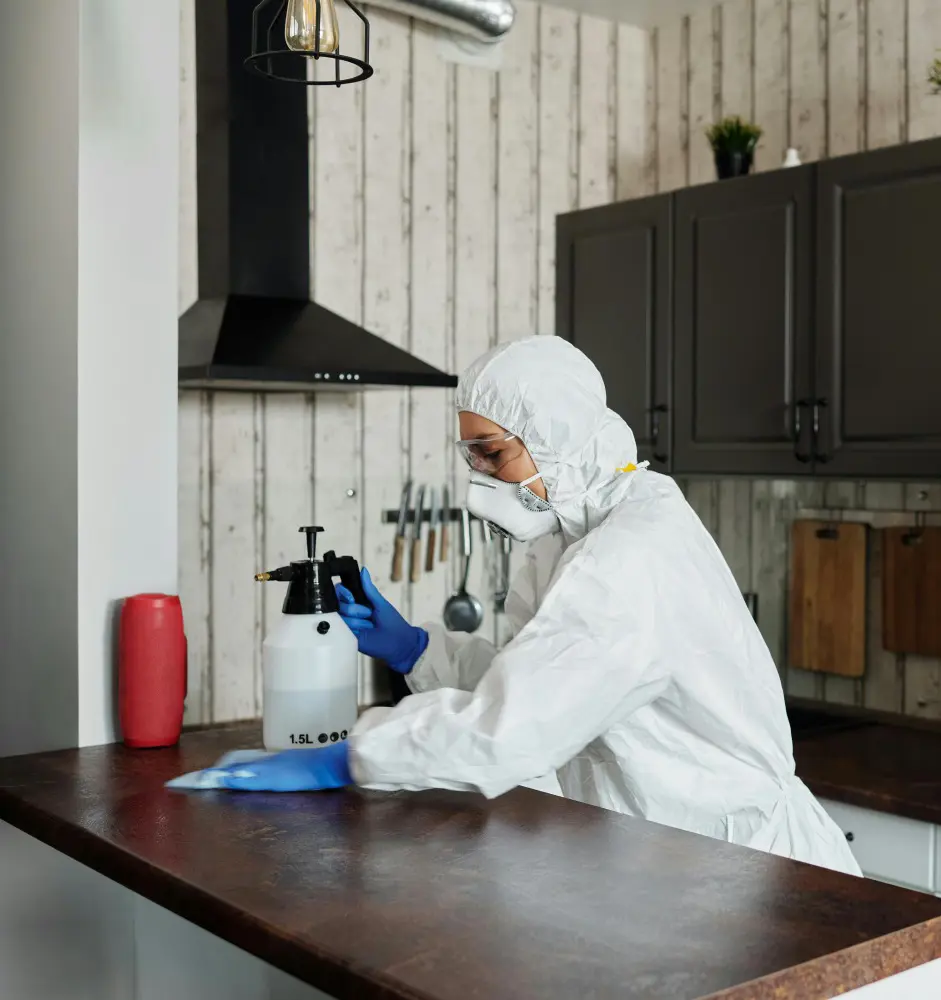 Scrub the surfaces very well with a strong disinfectant or through a mixture of vinegar and water. This is very important around certain areas, such as the corners of trash bins, under counters, or inside drains.