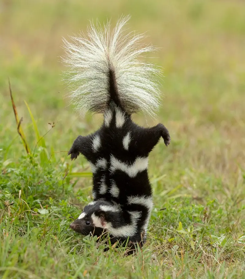 Not only that but when skunks discharge their oily, yellow spray from their anal glands in self-defense, they can reach over three feet and vaporizes quickly, permeating practically everything it touches.