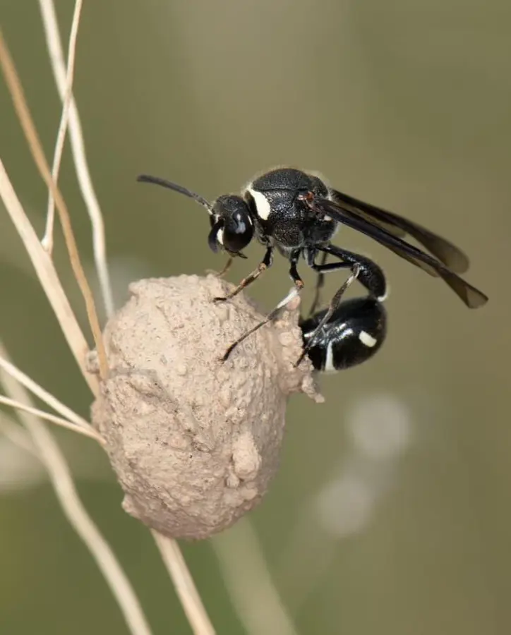 These wasps also have transparent, dark wings. An effective way to identify them is their nests. They build their nests with mud, hence the name. Unlike other wasps, they are not aggressive.
