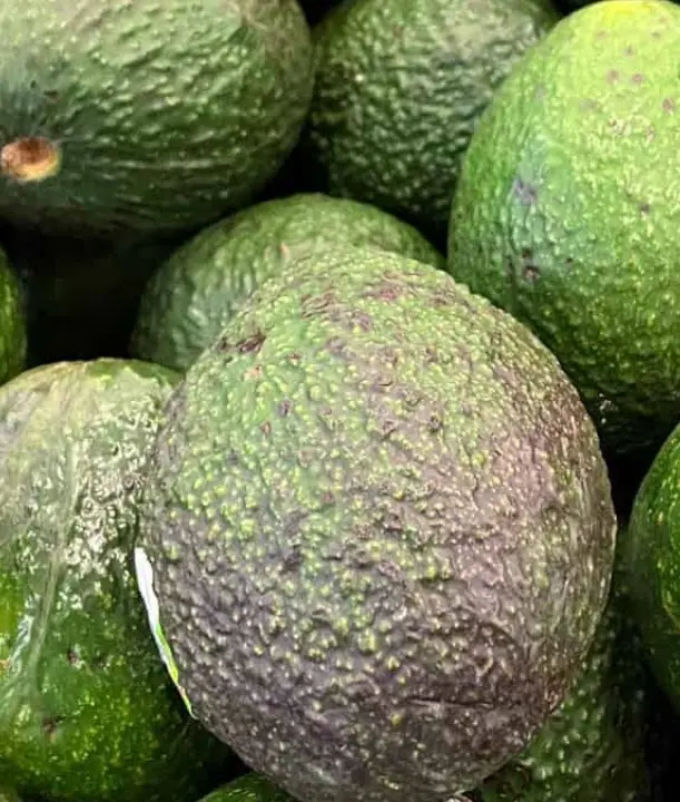When choosing an avocado, avoid bruises or breaks in the skin, as it indicates the fruit is low quality. Bruises form when the avocado is handled roughly or dropped, causing the flesh to become mushy and brown.