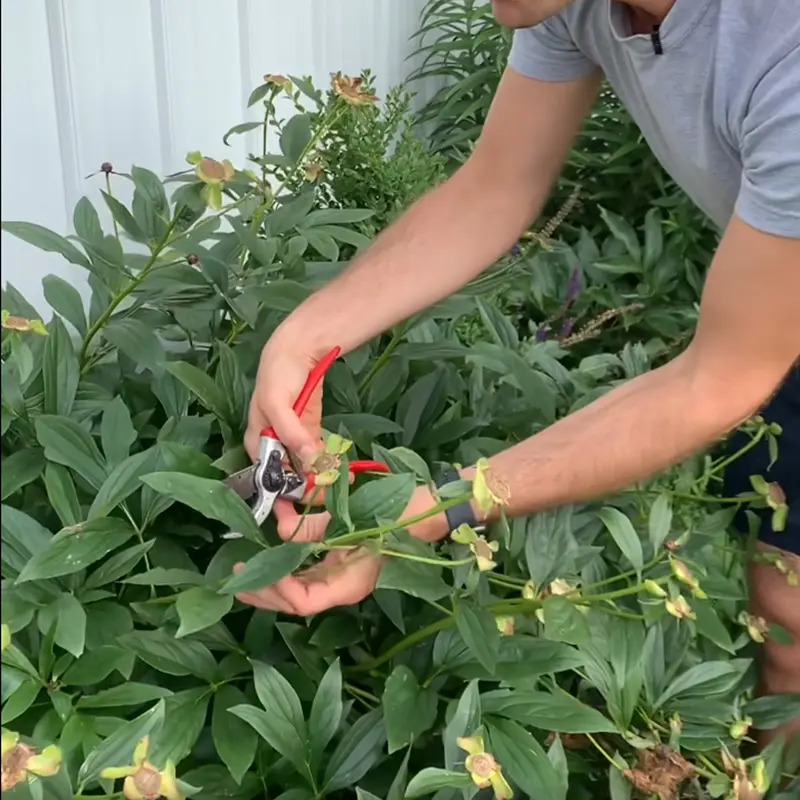 Proper footing helps you maintain balance and control during pruning, whether you're cutting back peonies in the fall or trimming peonies at any other time of year. By ensuring stable footing, you reduce the risk of accidents and ensure a safer gardening experience while figuring out when to cut peonies and how to prune peonies effectively.