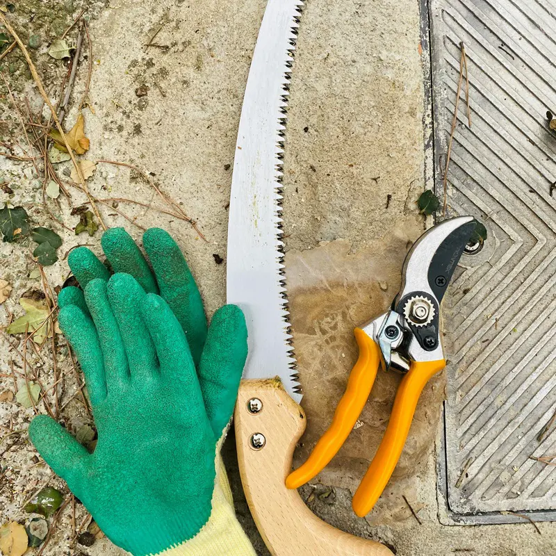 Wear hard-wearing, flexible gloves to be able to do the pruning tasks with comfort and safety.