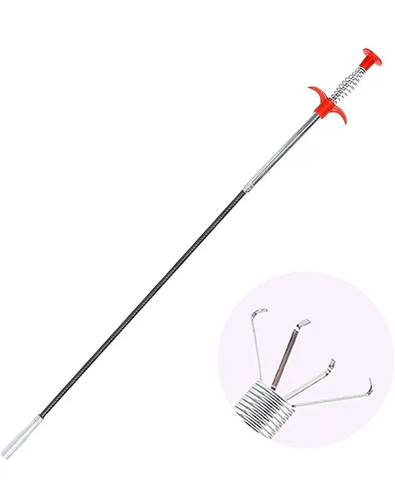 You just have to feed one end of the drain claw having several claws deep into the drainage, simultaneously squeezing the other end so that the incorporated claws get clamped holding the clogged items from the tub drainage. You have to keep on working on the other end to pull out the clawed end.