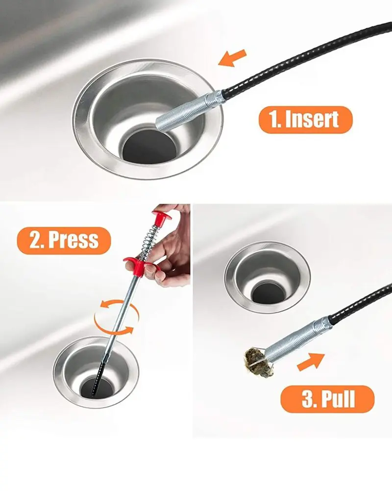 Make sure to use this stick a couple of times until it ceases to pull out tangled clogs from the drainage. But clean the gunk off the stick every time you pull it back and make sure to push it deeper into the drain only after cleaning all the tangled clogs.