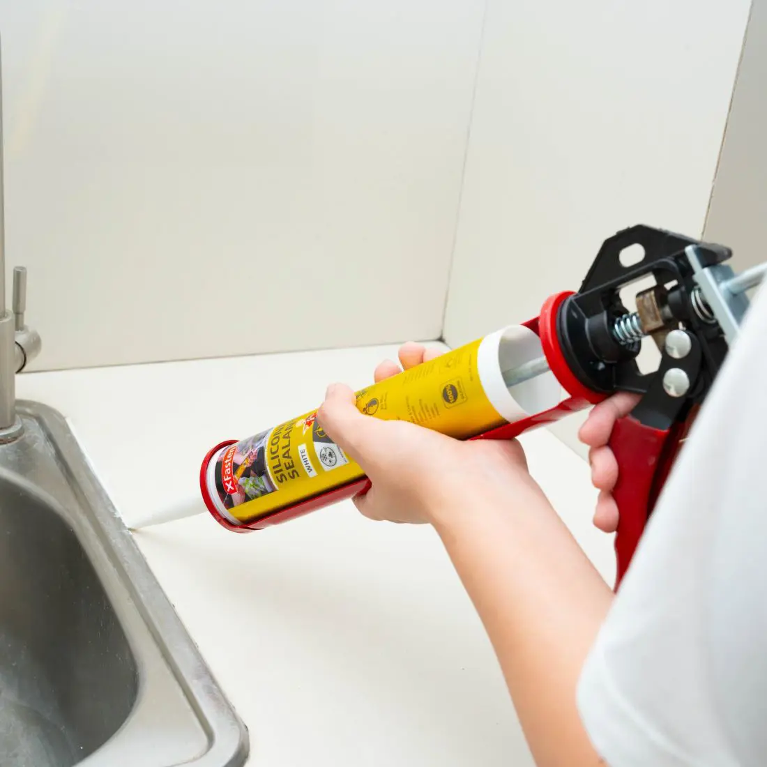 Most home maintenance projects rely on silicone caulk. It is water resistant, has excellent adhesive ability, and prevents mold and mildew. We recommend you use them for areas constantly exposed to water, like the bathroom and kitchen.