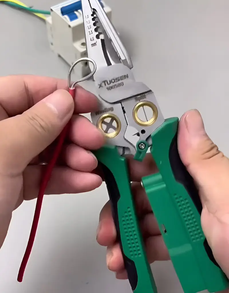 If the previous screwed wire end is in poor condition, trim off the bare end to prevent electric discharge from frayed copper. Then using a wire stripper, strip off about 3/4 inch of the insulation and bend the ends of the wire into a U-shaped loop.