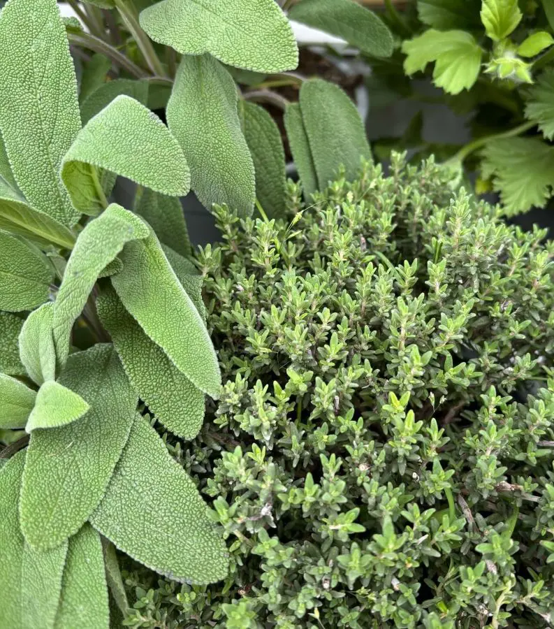 The tiny, delicate flowers of thyme attract beneficial insects, such as bees and ladybugs, which help with pollination and pest control. Thyme and sage not only thrive together in the garden but also complement each other in the kitchen.