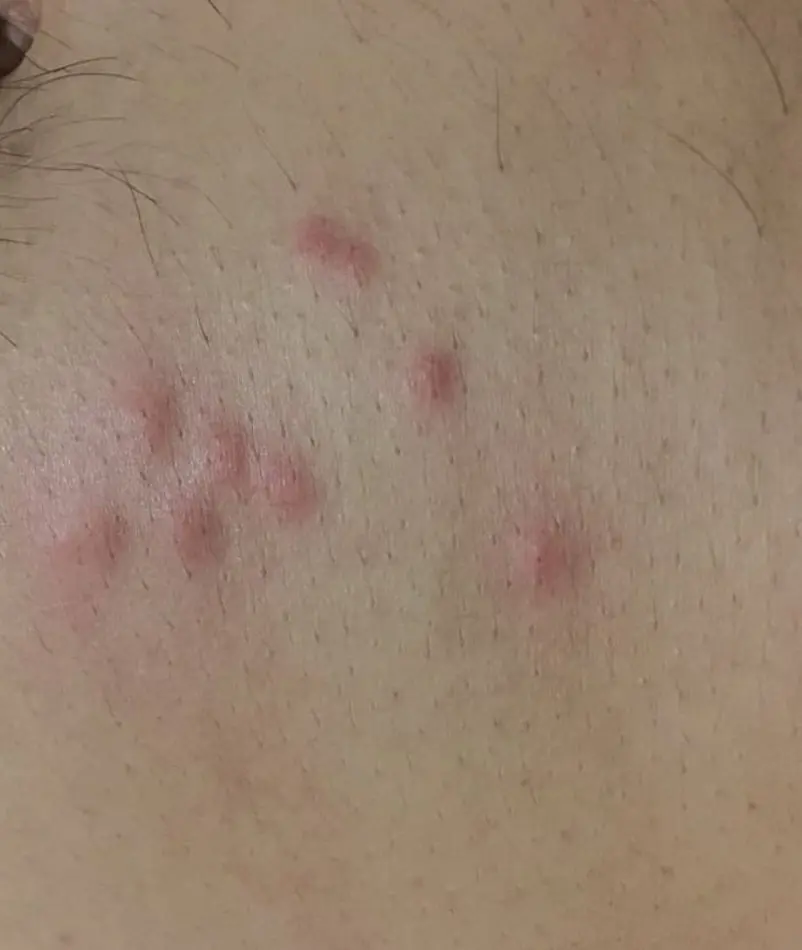 They are often grouped in clusters of 3 or 4, located a few centimeters apart in a linear or zigzag arrangement, commonly referred to as the “breakfast, lunch, and dinner” sign. However, the bites can appear isolated if the infestation is not severe.