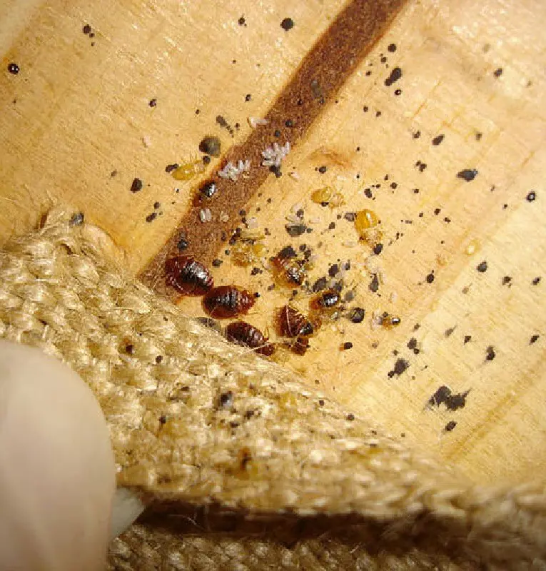 They might also be found under screws, nails, or any other hardware that holds the frame together. By shining a light into these areas, you can spot the reddish-brown bugs, their eggs, or black spots left by their droppings.