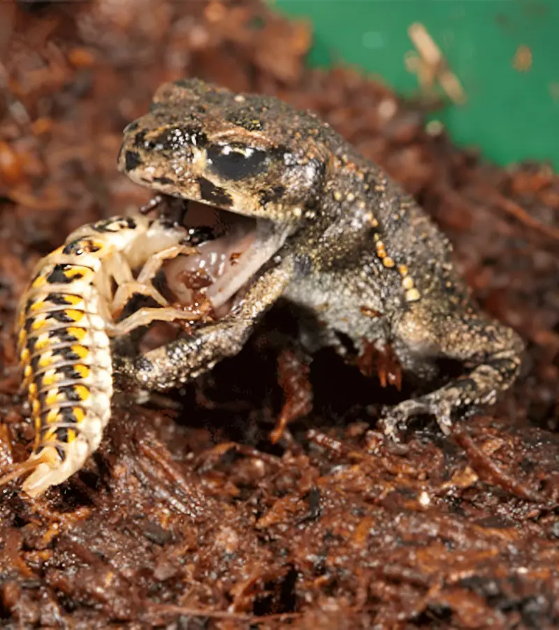 In the wild frogs can come across a lot of arthropods which are not common in most urban areas such as mites, centipedes, and millipedes. And some species of frogs also eat even harsher arthropods such as scorpions by the African bullfrog and crabs by the crab-eating frog when they come across them.
