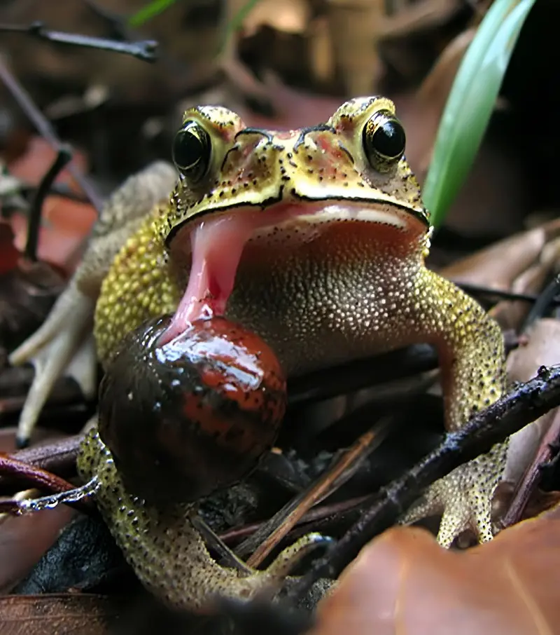 This is doubly true for aquatic frog species who do not even have to come out of their local homely pond to feed.