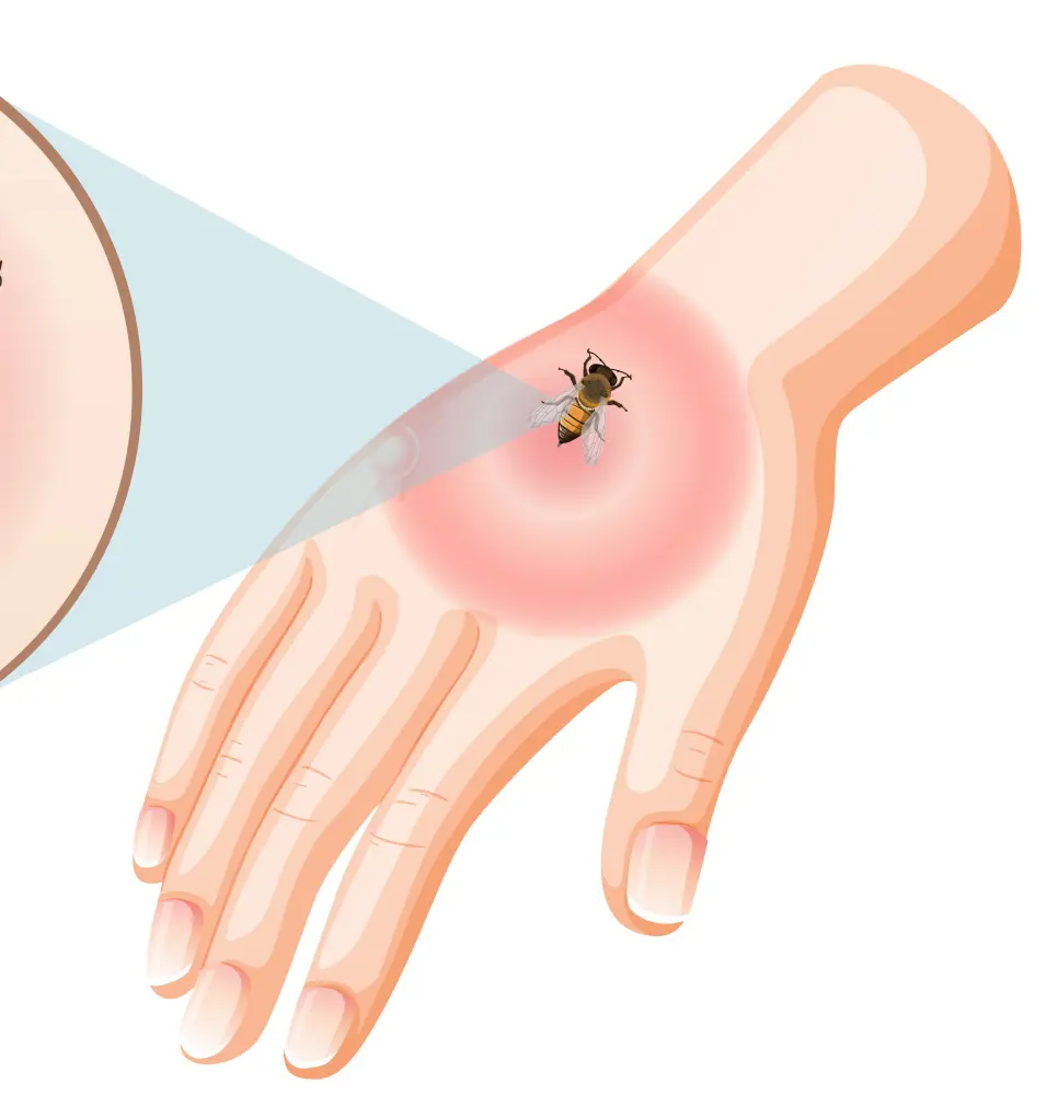 If there is a formation of swollen tissues beyond the sting area or the growth of swelling from the sting, it may be more dangerous. Normally, there should be swelling around the area of the sting, and if the swelling spreads to your arm or leg hugely or the swelling is big this might be a sign of a massive problem.