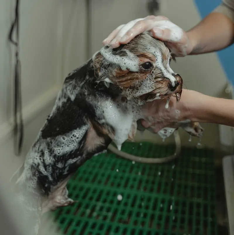 The natural oils and dander on your pet's skin make it easier for fleas to find and latch onto them. Once a host is found, fleas can hide in the fur, obtain food by biting, and then lay eggs. Grooming your pet regularly and bathing them can reduce the amount of dander on your pet and make them less attractive to fleas.