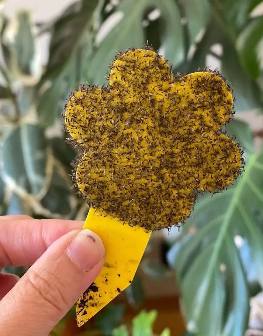 Use sticky traps if the gnat infestation is happening around your potted plants. These traps are bright yellow to attract the insects.